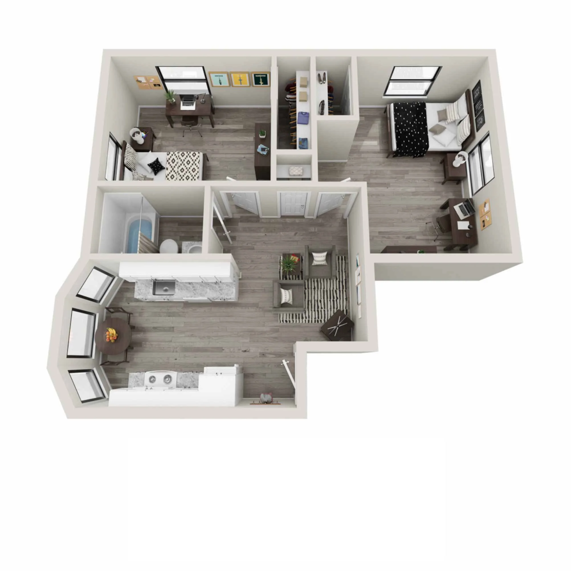 In each of our buildings, all suites include new, high-end finishes, luxury vinyl plank flooring, a modern kitchen with either Granite or Quartz countertops (including refrigerator, stove, dishwasher, and microwave), and central air-conditioning. Washers and dryers are conveniently located on-site, or in-suite in the 3-bedroom apartments.